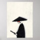 A imagem apresenta uma ilustração estilizada de um esqueleto vestido de samurai. O esqueleto tem olhos vermelhos brilhantes e veste um chapéu cônico preto tradicional. Está também a vestir um roupão preto e a segurar uma katana na mão direita. O fundo é uma textura esbranquiçada, fornecendo um forte contraste com a figura escura.