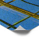 Esta poster apresenta uma design geométrica abstrato de uma claraboia, como se vê no chão de um átrio 9 andando abaixo. O ouro ondulado e as linhas pretas convergem para uma linha verde horizontal no centro. Um céu azul de turquesa profundo é visível além do vidro. Segure isto na parede ou no teto. É um sotaque na sala de excelente e vai gerar muitos comentários.
