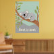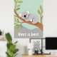 A sweet, snoozing koala cuddles a tree branch with gentle Zzz above, framed by soft sage green and hand‑lettered mantra “Rest is best” for soothing nursery and kids’ room decor. Cozy pastel palette and textured illustration create a calm bedtime vibe, while focused keywords align with Zazzle metadata guidelines for discoverability.