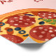 A coleção de tópicos de pizza divertida apresenta ilustrações de pizza de cor d'água, texto esboçado manualmente e cores brilhantes. O fundo tem um padrão de xadrez vermelho e branco que lembra os restaurantes italianos e de pizza.