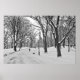 Fotografia original a preto e branco de neve recentemente caída no Central Park, em Manhattan.