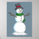 Um boneco de neve, mas arrepiante, veste um chapéu desossado vermelho e um cachecol verde nesta ilustração de vinho feita por Richard H. Fay.