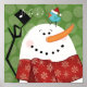 © Verique Charron / Wild Apple. Esta imagem mostra um boneco de neve de Natal vestindo um lenço verde. Ele está raptando um pássaro azul que está vestindo um chapéu de Papai Noel.