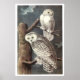 Linda reprodução de John James Audubon; pintura realista da Coruja das Neves.