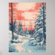 Experimente a beleza serena de uma paisagem de inverno capturada ao pôr do sol, onde árvores cobertas de neve se posicionam majestamente contra um pano de fundo de matizes vibrantes. Esta cena encantadora convida-vos a mergulharem na tranquilidade da natureza, à medida que o brilho suave do pôr do sol lança uma luz quente sobre a neve pristina, criando um contraste espantoso.