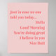 No caso de ninguém te ter contado hoje... Olá Bom dia, estás a fazer excelente, acredito em ti Bumbum Rosa e Vermelho