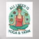 A frase "A mulher meditando com fio, tudo que preciso é de Yoga e Yarn" sugere que a mulher acha que yoga e fios se comportando são aspectos importantes de sua vida. Ao combinar as duas atividades, ela é capaz de alcançar uma sensação de relaxamento, atenção e criatividade. Esta frase destaca a ideia de que encontrar alegria e contentamento pode ser tão simples quanto desenvolver as atividades que nos trazem mais felicidade e paz, seja o yoga, a confecção de fios, ou qualquer outra coisa que fale com nossas almas. Tanto o yoga como a confecção de fios podem ser atividades solitárias que permitem a introspecção e a autorreflexão, fazer-os de um pareamento natural para aqueles que buscam um estilo de vida pacífico e cumpridor.