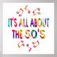 Se a década de 50 é a década que você ama e se lembra, compartilhe como você se sente com esta design colorida com notas de música e as palavras É tudo sobre o 50.