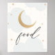 Sinal de "Comida" com nuvens azuis de cor aquosa e estrelas douradas que correspondem à Coleção sobre a Lua Dourada encontrada no Compro Adore Paper Co. Zazzle. Se desejar, personalize com o seu texto.