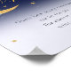 Esta é uma chá de fraldas adorável, "Adivinhem Quantos", mesa de cartaz baseado na frase "Estamos sobre a Lua". O design apresenta uma fonte de caligrafia com escrita manuscrita, uma lua de ouro brilhante acompanhada de estrelas douradas e nuvens fofinhas e fofinhas em um céu noturno estrelado e cintilante. Este é um poster que pode ser descarregado e que você mesmo pode impressão. Você pode atualizar facilmente o texto conforme necessário usando o modelo fornecido. Entre em contato com o designer para obter informações sobre este design ou sobre produtos correspondentes que não estejam disponíveis.