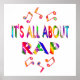Os amantes da música rap apreciarão este design colorido com as notas de música e as palavras É tudo sobre Rap.