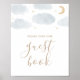 Convide seus chás de fraldas convidados a assinar seu livro de hóspedes com este símbolo elegante, com nuvens de aquarelas, estrelas e tipografia lua e ouro.