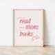 Poster de Impressão do livro de tipografia retrô mínimo. Design de quarto ou espaço com este simples e retrorado tema 'ler mais livros' impressão de arte em parede, perfeito para amantes de livros. *O texto no roteiro diz: "Expanda sua mente", "aprenda, cresça", e "Um livro por dia mantém a realidade longe".
