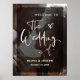 Este moderno e elegante cartaz de boas-vindas ao casamento mostra sua própria foto pessoal cobrindo completamente o fundo. Uma camada preta pura contém tipografia de roteiros brancos e um coração desenhado à mão na moda.