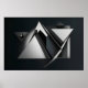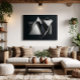 Triângulos e polígonos se entrelaçam em camadas translúcidas com bordas cirúrgicas e sombras sutis. Esta obra constrói profundidade geométrica por meio de transparências calculadas, onde cada interseção revela novas relações espaciais e jogo de luz.