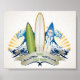 Decorre suas paredes com este impressão único de surfboard. Apresentando seu texto nas duas faixas frontais que envolvem três pranchas de estilo diferentes.