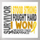 Para ver esta design para mais de 35 tipos de canceres, assim como mais dos nossos designs de Sobreviventes de câncer de infância exclusivos, visite a Seção de Canceres de infância de um compro especial de Sobreviventes de câncer de infância, você fez isso! Você ficou forte. Você lutou contra o duro. Você ganhou. Ponto final. Declare a sua vitória e entregue a importante mensagem de conscientização do Cancer da infância a todos ao seu redor com t-shirts, roupa, mercadoria e presentes com texto ousado em tons contrastantes de ouro, cinza e ouro e uma fita de reconhecimento do Cancer da infância, organizada em um layout notável. Como sobreviventes de canceres e doenças e guerreiros, cônjuges e defensores ávidos da conscientização, estamos felizes em fazer contribuições regulares para organizações de caridade médica, animal e Darfur e convidamos vocês a pensar em nós primeiro para todas as suas necessidades de Sobrevivente de câncer, conscientização e apoio na infância.