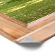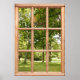 Sunshine e Shade entre as Árvores do Parque Esta poster que parece uma janela mostra uma vista de uma cena verde suave. As folhosas oferecem sombra do sol de verão e molham a grama com luz solar e sombra. Uma vista tranquila para olhar, enquadrada por uma janela de madeira.