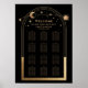 A Lua Negra Mística Cor-de-rosa-Sol Estrelas Astronomia Sentagem de Casamento Gráfico Poster de Casamento Sinais de Casamento Impressão apresenta um sol dourado, lua e estrelas num fundo preto. Dentro o quadro é o texto "Bem-vindo" no elegante script de caligrafia dourada e as informações personalizadas do assento de casamento. Projetado por ©2022 Evco Studio www.zazzle.com/store/evcostudio