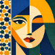 Celebre a harmonia dos opostos com este retrato simbólico do "Sol e Lua". Usando um design de face dividida para representar a calidez do dia (terracota) e o mistério da noite (azul marinho profundo), esta obra de arte geométrica traz um senso de equilíbrio e paz para qualquer quarto. Ideal para estúdios de yoga, cantos de meditação ou decoração de quarto.