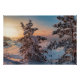 Paisagem nevada ao pôr do sol, congelada e coberta de neve no inverno.