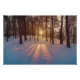 Pôr do sol na floresta de neve de inverno. Sol colorido em floresta de coníferas com pinheiros. Paisagem de inverno
