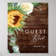 Este sinal de madeira de girassol country ousado | livro de visitas é perfeito para o seu casamento simples e clássico boho no quintal da casa de campo no verão. O design apresenta um buquê de girassóis amarelos dourados em aquarela vintage e laranja rústicos, folhagens de eucalipto verde-sage modernas e elegantes, e uma rosa marfim branca. O design é ideal para um casamento casual ao ar livre com folhagem de outono minimalista. Por favor, sinta-se à vontade para entrar em contato conosco com qualquer dúvida sobre o design do produto; votos!