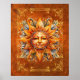 Belo impressão de arte de parede apresenta uma mitologia gerada por IA, Deity Sun Face, no fundo do cobrir de livros antigos.