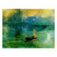 "Sunrise", retrata uma cena de porto sereno ao amanhecer, onde o sol sobe acima do horizonte, lançando um brilho suave sobre a água e os barcos. É um exemplo exemplar da arte impressionista, com sua ênfase na captura dos efeitos fugazes da luz e da atmosfera. A pintura é proeminente por sua pincelada e paleta vibrante de cores, transmitindo um senso de tranquilidade e beleza no espetáculo cotidiano da natureza.
