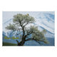 Pôster Solitary Blossoming Tree and Snowy Mountains