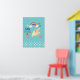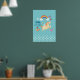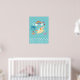 Um pôster que diz "pequeno sonhador", mas pode ser alterado / personalizado para dizer algo diferente. Projetado com bolinhas brancas ao longo da borda inferior em um fundo azul esverdeado. Um unicórnio feliz brinca sob um arco-íris colorido com nuvens fofas. Flores, borboletas, corações e morangos adicionam um toque charmoso a este design desenhado à mão.