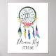 Decoração de berçário infantil boho, arte para parede em estilo boêmio. Sonhador de água (dreamcatcher) em aquarela com penas coloridas e buquê de flores. SONHE GRANDE PEQUENO. Perfeito para quarto de menina; recém-nascido, chá de bebê, aniversário.