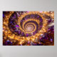 Uma espiral geométrica mesmerizante brilhando com luz ouro e tons violetas profundos, perfeita para amantes da abstrato de arte moderna.