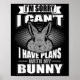 Poster Sorry I Can't I Have Plans With My Bunny Rabbit