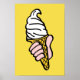 cone de sorvete em um design de pop de arte de desenho em um fundo amarelo. Grande gráfico de rede de Sorvete brilhante em um poster.