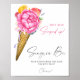 Este chá de panela temático é decorado com florais de aquarela e um cone de sorvete. O texto diz: "Ela foi enfiada!" na tipografia de script rosa-na moda.