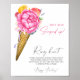 Este chá de panela temático é decorado com florais de aquarela e um cone de sorvete. O texto diz: "Ela foi enfiada!" na tipografia de script rosa-na moda. Sorvete de aquarelas com flores e frutas.