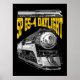 This bold graphic re-imagines one of the most legendary symbols of American rail history — the Southern Pacific GS-4 "Daylight." Illustrated in a dramatic, high-contrast stippled pen-and-ink style, the piece transforms the locomotive from a purely functional machine into an enduring work of industrial art.