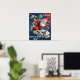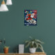 Amplie nas férias com este poster que apresenta o Pai Natal numa reviravolta festiva, enquanto ele se senta sobre um foguete pronto para entregar presentes em velocidade de dobra.