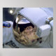 A Baía de Carga e o Módulo de Tripulação da Space Shuttle Discovery, e o horizonte da Terra são refletidos no visor do capacete de um dos astronautas que caminham no STS-103. Os astronautas Steven L. Smith, John M. Grunsfeld, C. Michael Foale e Claude Nicollier participaram em três dias de atividade extravagular na terceira visita de serviço da NASA ao Telescópio Espacial Hubble (HST).
