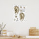 Auricular Ear Acupuncture Poster in Spanish. Ilustracao dos Pontos Auriculare Auriculoterapia. Regiones Anatómicas del Pabellón Auricular. Puntos Maestros. Protocolo NADA para las adicciones. Localización de los cinco órganoz Zang. Contains the Chinese system of auriculotherapy points, auricular anatomy landmarks, NADA addiction formula, Master control points with frequencies and indications for each Master control point used in electro-acupuncture. The chart is in English. The First and Only Auricular Acupuncture Chart you will Ever Need! Auriculotherapy is the stimulation of the auricle part of the external ear for the diagnosis and treatment of health conditions in other parts of the body. The stimulation can be done with acupuncture needles, often referred to as ear acupuncture. The stimulation can also be done by manual pressure, referred to as auricular acupressure (ear reflexology). These points on the ear can also be stimulated with lasers, magnets, microcurrent, and ear pellets. This auricular acupuncture chart is a favorite among acupuncture students.
