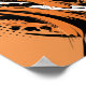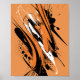 Um trabalho de arte de abstrato surpreendente com preto, branco e laranja em negrito sobre um fundo laranja sólido. A design apresenta pinceladas dinâmicas, decapantes de tinta e espirais enérgicas, criando um cheio moderno de arte urbana de rua, de movimento e expressão.