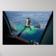 Um Frogman Marinho salta de um helicóptero de recuperação para a água para ajudar nas operações de recuperação do Gemini XII.