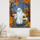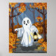 Poster Spooky Ghost with Lantern in Autumn Forest