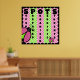 Poster com bolinhas de branco sobre limão e cor-de-rosa, belos joelhos rosados e aspas com as letras SPOTS.