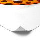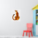Stylized cheetah shown from behind, turning its head over the shoulder toward the viewer. The body forms a gentle S-curve with a slender neck, small head, and simplified silhouette. Bright orange coat with bold black spots and a white neck creates strong contrast and visual balance. The long tail curves to the side, complementing the pose. Set on a cool off-white background, the composition emphasizes the stylized shape, bold color, and spotted pattern on this wall print. AI-assisted artwork.