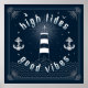 High Tides Good Vibes para aqueles que adoram gráficos marinheiros como âncoras e faróis, bem como gaivotas e conchas. Para aqueles que se perguntam o que High Tides, Good Vibes significa é que a felicidade vem às ondas e uma perspectiva positiva na vida. Pode ser um presente para aniversários, aniversários ou feriados para um amigo ou família. Criado com uma única inscrição personalizada e ilustração para aqueles que adoram Estilos Únicos e Novidade! Desenhado por Katrina Sutton.