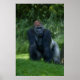 Gorila majestosa e prateada, orgulhosamente em uma paisagem verde esmagadora, exuando força e domínio. A luz do sol em seu cabelo prateado destaca os detalhes intrincados de seu físico poderoso. O olhar intenso e a postura firme do gorila transmitem um senso de realismo e de graça selvagem, fazer esta imagem como uma representação cativante da beleza indomada da natureza.