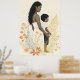 This heartfelt artwork shows a mother standing beside her child, holding his hand with quiet resolve. Her expression is calm, her posture strong, and their bond is unspoken but unmistakable. Surrounded by earthy florals and golden leaves, this piece blends strength and softness, portraying a love that protects without needing words.