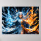 Um radiante guardião emerge com asas de gelo cintilante e fogo em chamas, comandando os elementos celestes. Seu traje fluindo brilha com energia eetérea enquanto ela flutua graciosamente através do vazio iluminado.